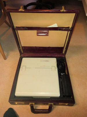 ![]() | Hij werd geleverd met een leren laptopkoffer. | ||||||||||||||||||||||||